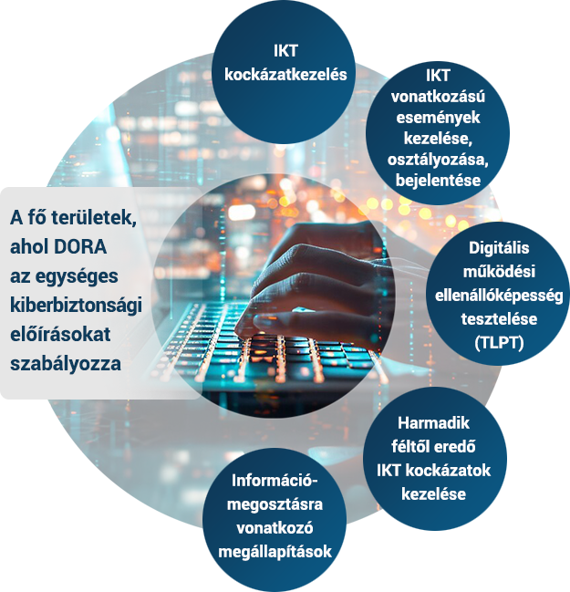 A DORA az egységes kiberbiztonsági előírásokat alapvetően öt fő területen szabályozza: